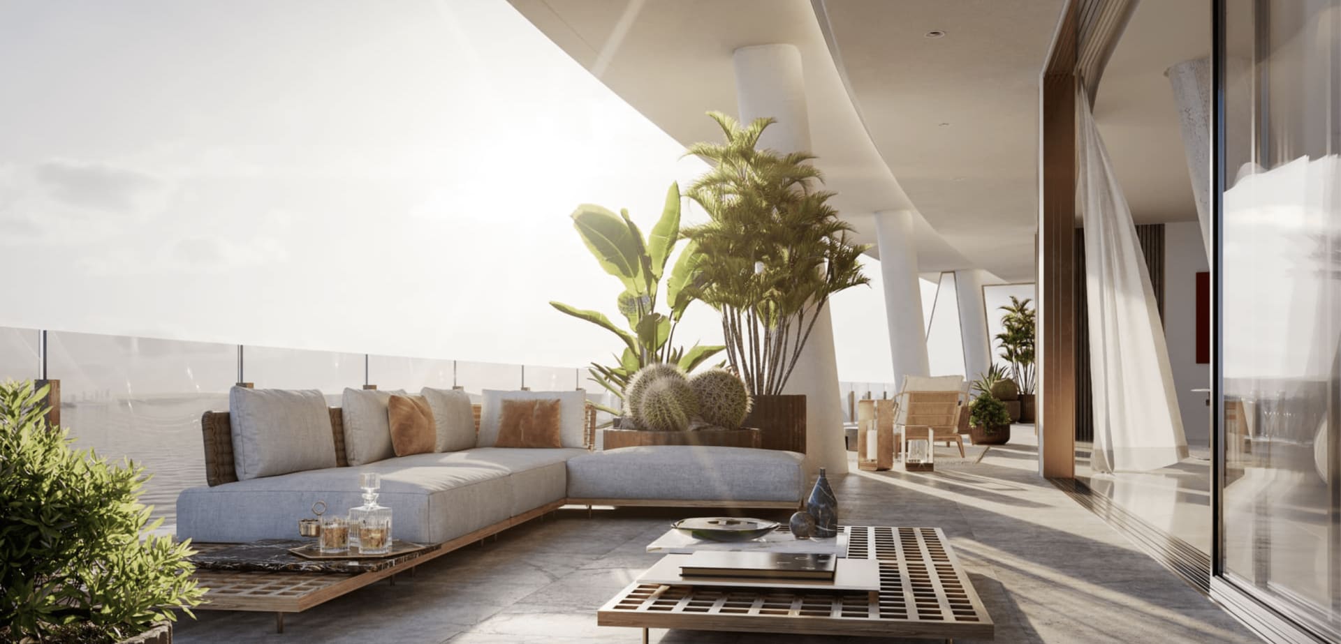 - Large waterfront terraces allow for dining, lounging, and entertaining in South Florida’s remarkable climate.